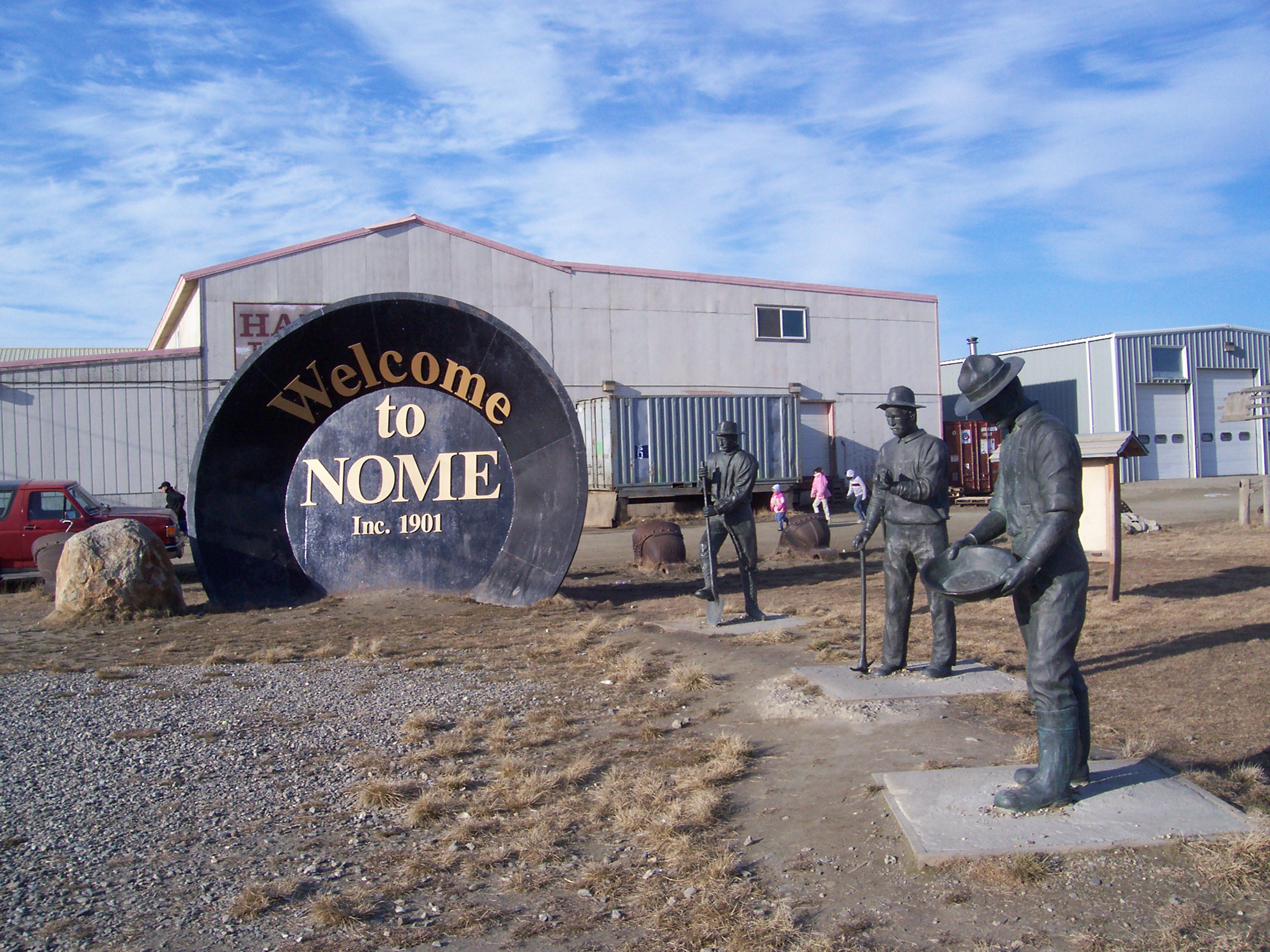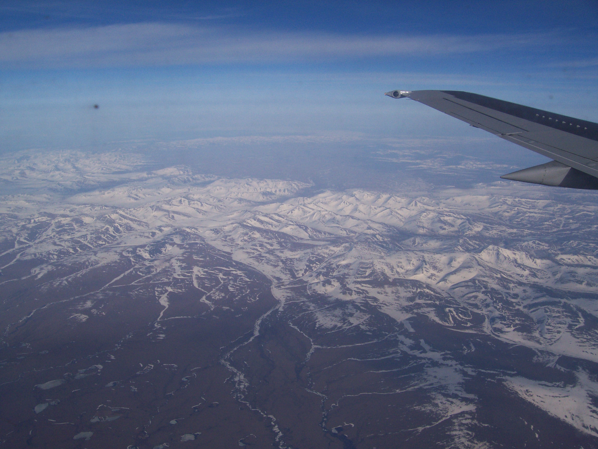 Efter en vacker dag på planet norrut längs kusten med snötäckta berg och intressanta öbildningar nådde vi Anchorage, där vi bytte plan till Nome.