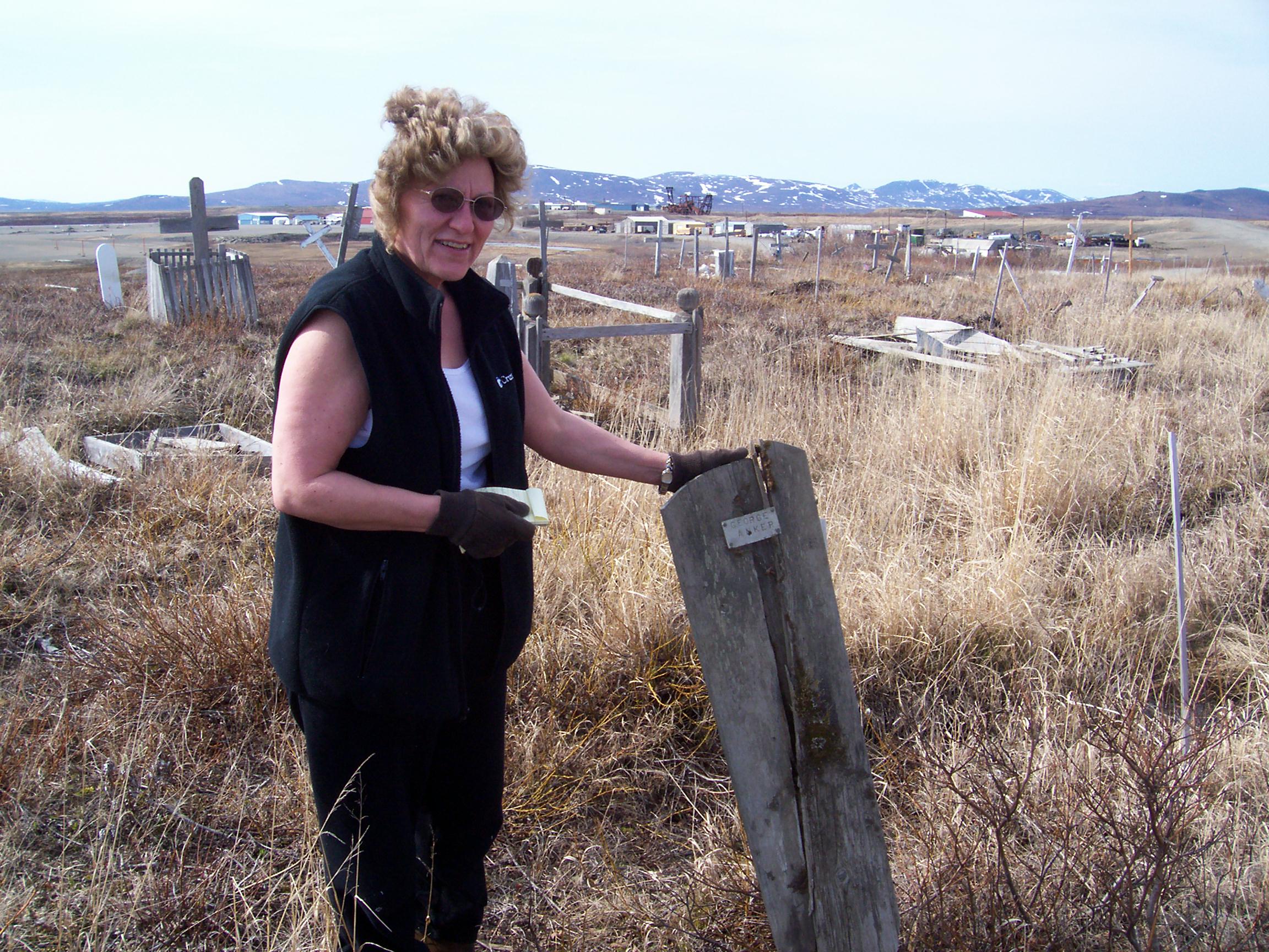 Johan och jag var sedan på museet och tittade på gamla foton och information om gamla golddiggers, jägare och hundspanntävlingar. Vi fick en del information om Aspen och Anker. Besökte turistbyrån på sena eftermiddagen och de ringde då upp chefen på kommunkontoret – Cassy Coven – som kom ner på några minuter och tog mig med till deras arkiv. Där tog hon fram papper angående Aspens och Ankers död och även tidningsurklipp om Anker. Sedan körde hon mig till kyrkogården, där vi kunde hitta deras gravar. Det kändes stort på något sätt att kunna ära minnet av dessa två, under sina sista år så ensamma guldgrävare och att det också råkade sammanfalla med Memorial Day.